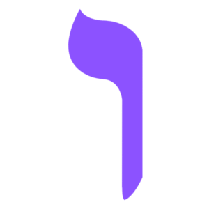 Su forma es una línea vertical que desciende, como un hilo que une la parte superior con la parte inferior. En hebreo, Vav significa “gancho” o “conexión”, y representa el vínculo entre lo espiritual y lo material, el puente que une el cielo y la tierra.